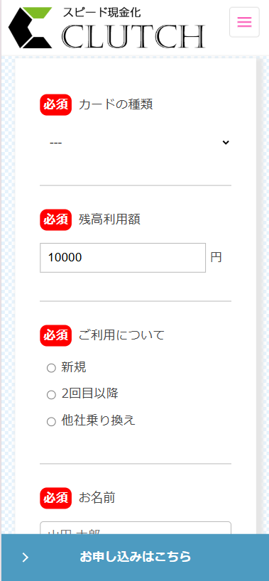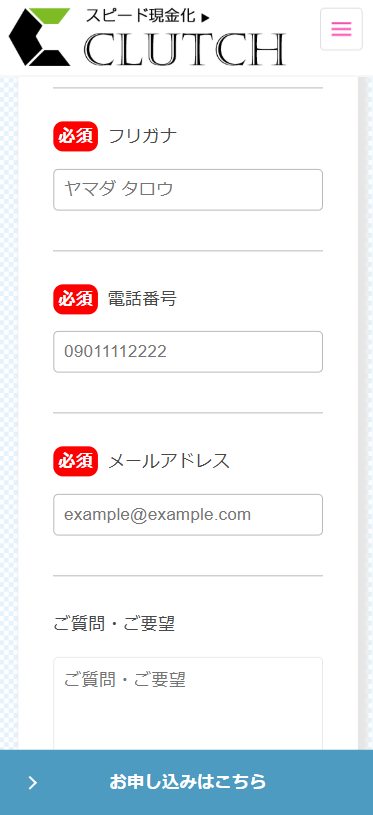 まずはクラッチの公式サイトにあるお問い合わせフォームから申し込みを行います。